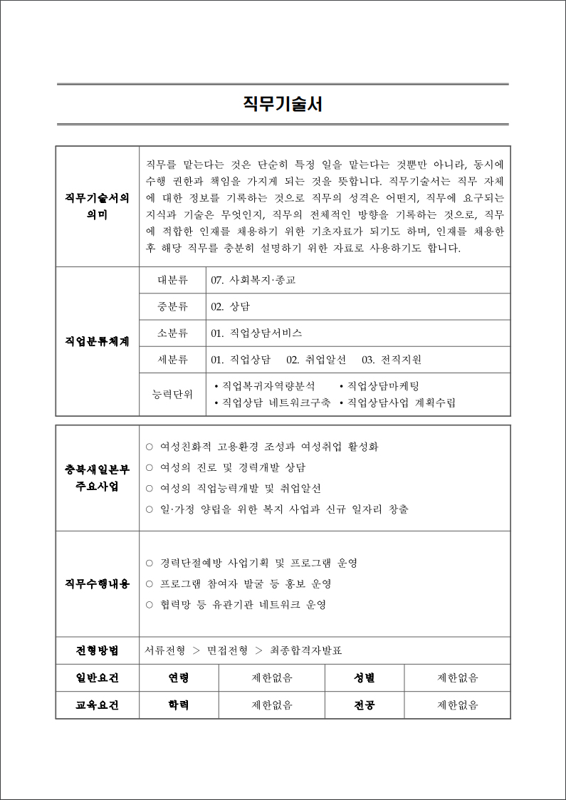 (취업컨설턴트) 충북여성새로일하기센터 직원 채용 ..